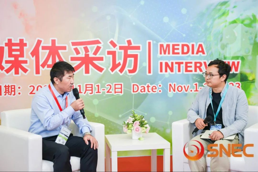 ▲金年金字招牌(jinnian)技术总监赵展展先生接受SNEC媒体采访